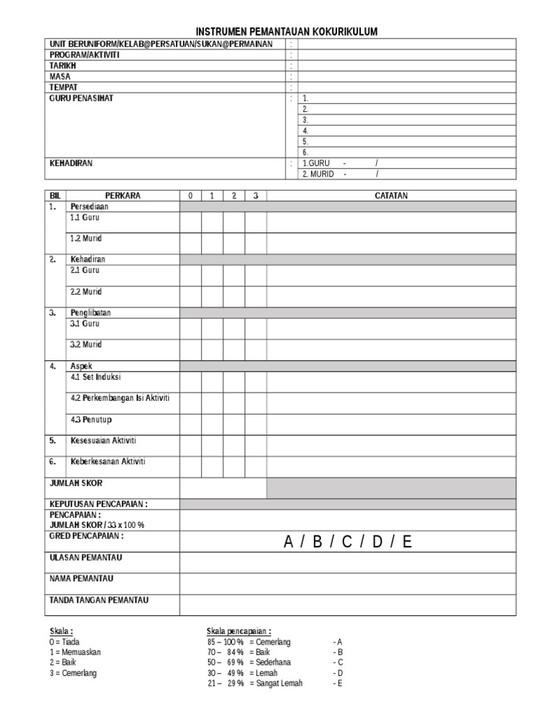 Related : Borang Pemantauan Aktiviti Kokurikulum / Menyelaras semua aktiviti kokurikulum sekolah..