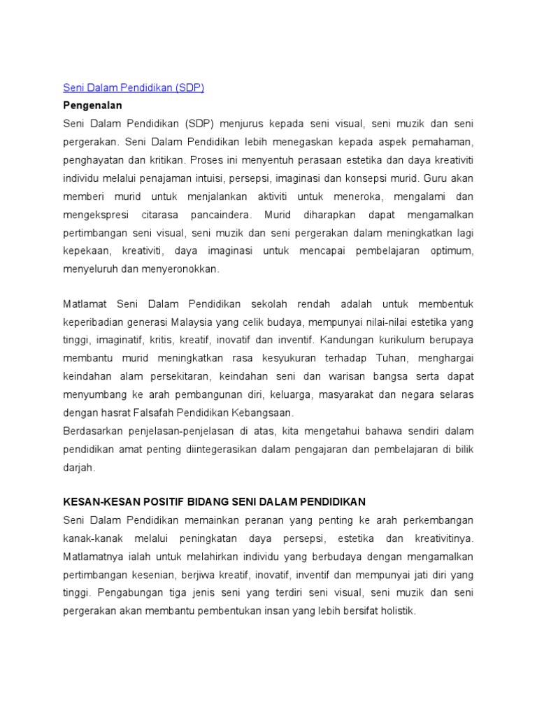 Seni Dalam Pendidikan Pdf : Tutorial kolaj pendidikan seni pendidikan seni visual tahun 3 part 1.wmv.. Report seni dalam pendidikan rph. please fill this form, we will try to respond as soon as possible. Istilah penyelidikan seringkali dikaitkan dengan proses mencari kebenaran, penemuan. Olah tubuh dan olah rasa dalam pembelajaran seni tari terhadap pengembangan karakter. Aplikasi mobile apps gamelan untuk pembelajaran seni. Seni dalam pendidikan akan menjadikan mata pelajaran yang dipelajari oleh murid di sekolah menjadi lebih seronok.